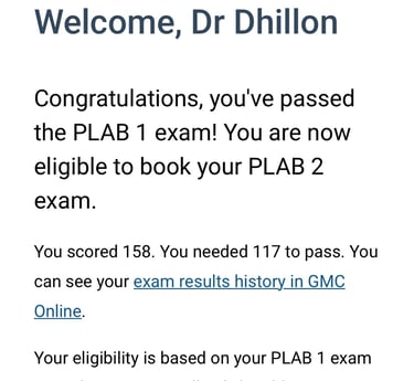 Hi, I’m Dr. Angad Singh Dhillon. I’ve been in your shoes — long hours of studying, confusion over which resources to trust, and the pressure of wanting to succeed. I cleared PLAB 1 with 158/180 and FMGE July 2024 with a score of 244/300 (AIR 2), so I know exactly how it feels to be overwhelmed and still come out on top.